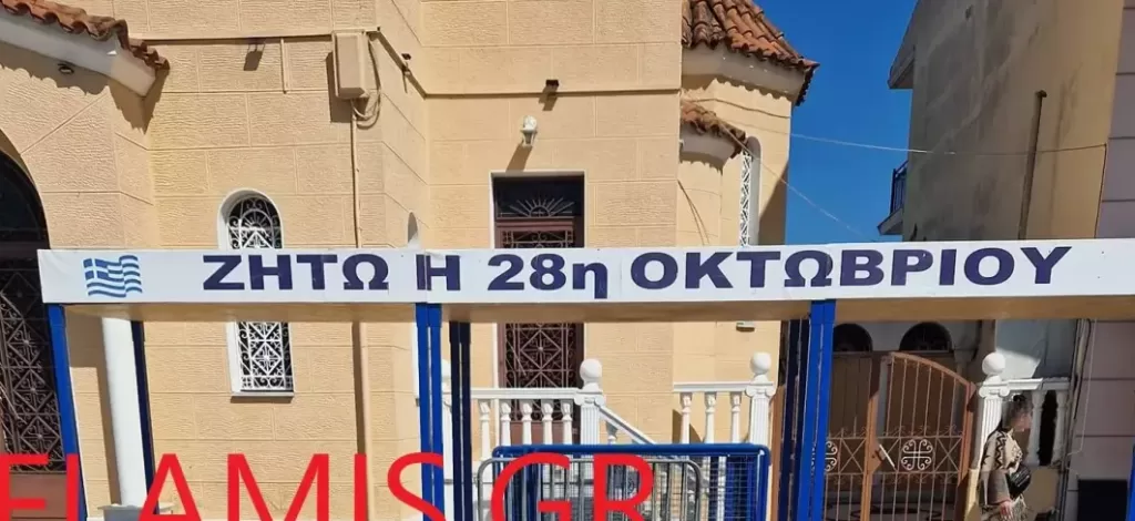 Το παράδοξο όμως είναι ότι ο υπεύθυνος του στολισμού, έκανε λάθος και η επιγραφή που ήταν τοποθετημένη στην εξέδρα των επισήμων αντί για «Ζήτω η 25η Μαρτίου» έγραφε «Ζήτω η 28η Οκτωβρίου».