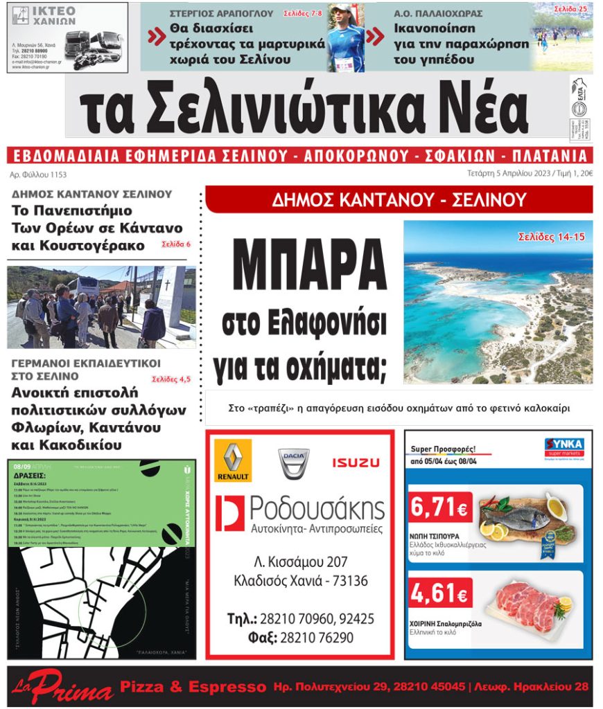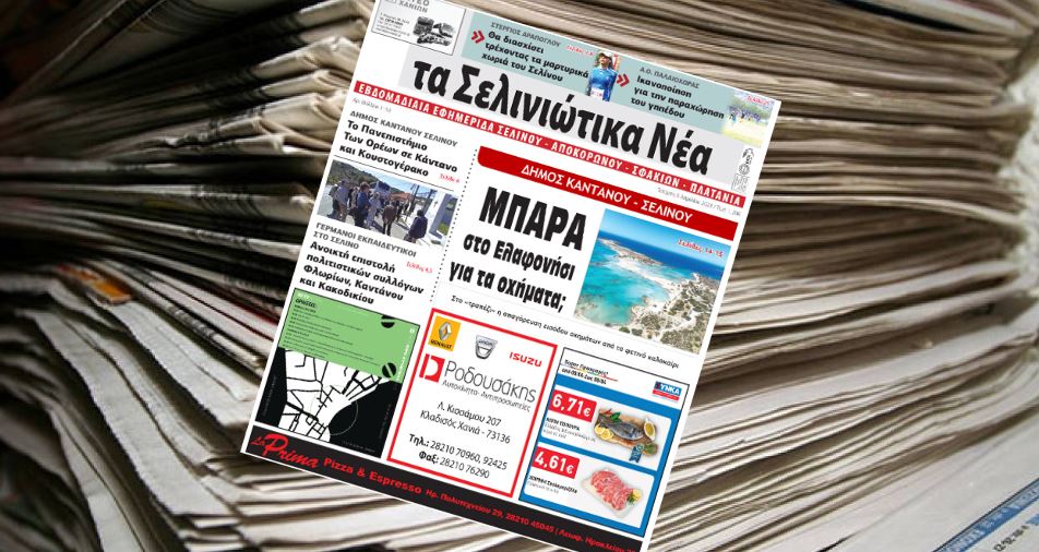 Κυκλοφόρησε το νέο φύλλο της εβδομαδιαίας τοπικής εφημερίδας της Κρήτης “Σελινιώτικα Νέα”.