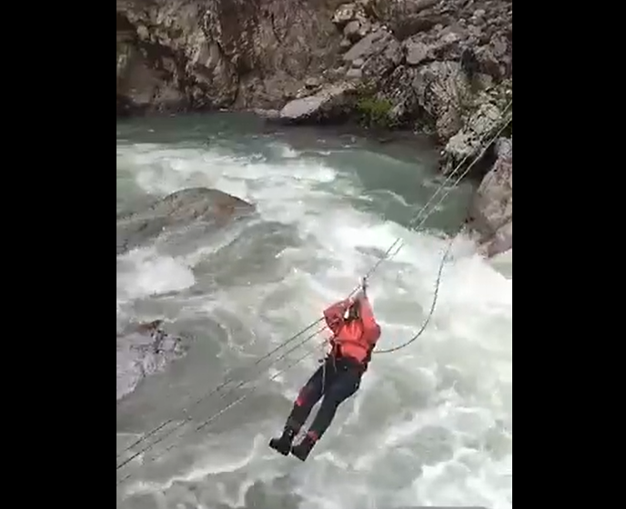 Οι πυροσβέστες κολύμπησαν στην απέναντι όχθη και με ειδικές τεχνικές και χρήση σχοινιών διάσωσης μετέφεραν το ζευγάρι σε ασφαλές σημείο περνώντας τους πάνω από τον ποταμό.