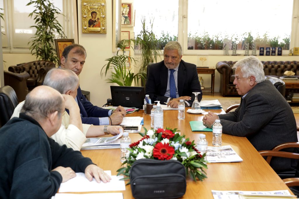 Στη συνάντηση μετείχαν επίσης ο Αντιπεριφερειάρχης Νήσων Στ. Βοϊδονικόλας, ο Διευθυντής Τεχνικών Έργων Πειραιά κ. Στρ. Παγωτέλης και ο Προϊστάμενος ΤΤΥΝΔ ΠΕ Νήσων κ. Στ. Βεϊόγλου.
