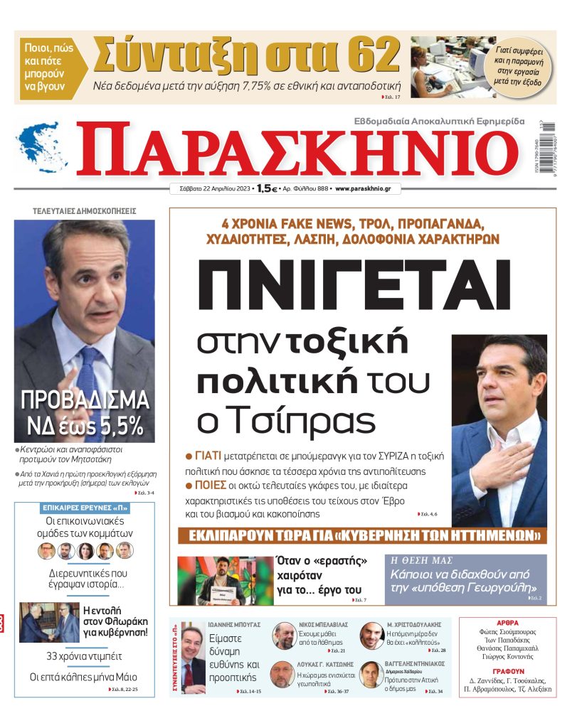 Μη χάσετε το Σάββατο 22 Απριλίου το «ΠΑΡΑΣΚΗΝΙΟ», που κυκλοφορεί με ρεπορτάζ, έρευνες και παρεμβάσεις οι οποίες θα συζητηθούν.