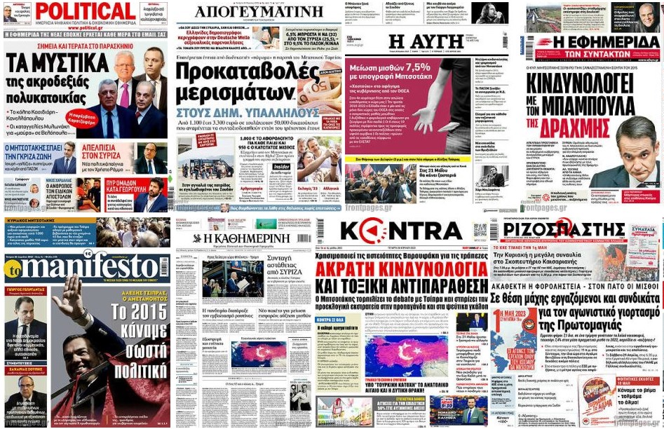 Κοινοποίηση Facebook Twitter LinkedIn Pinterest Email Copy Link Δείτε τα πρωτοσέλιδα των σημερινών εφημερίδων Πρωτοσέλιδα