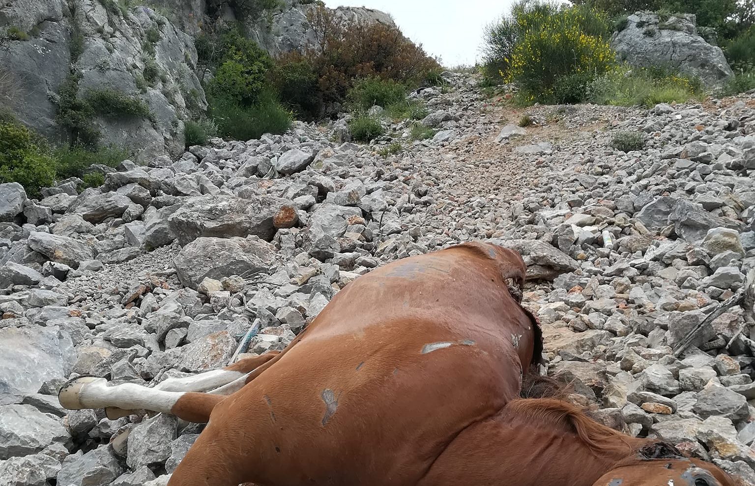 Στην καταγγελία που κοινοποιήθηκε προς την Αστυνομία, το Υπουργείο Προστασίας του Πολίτη, την ειδική Γραμματεία και τον Άρειο Πάγο γίνεται λόγος για απόκρημνο χώρο στη δυτική Πάρνηθα στον οποίο πετιούνται συστηματικά άλογα.