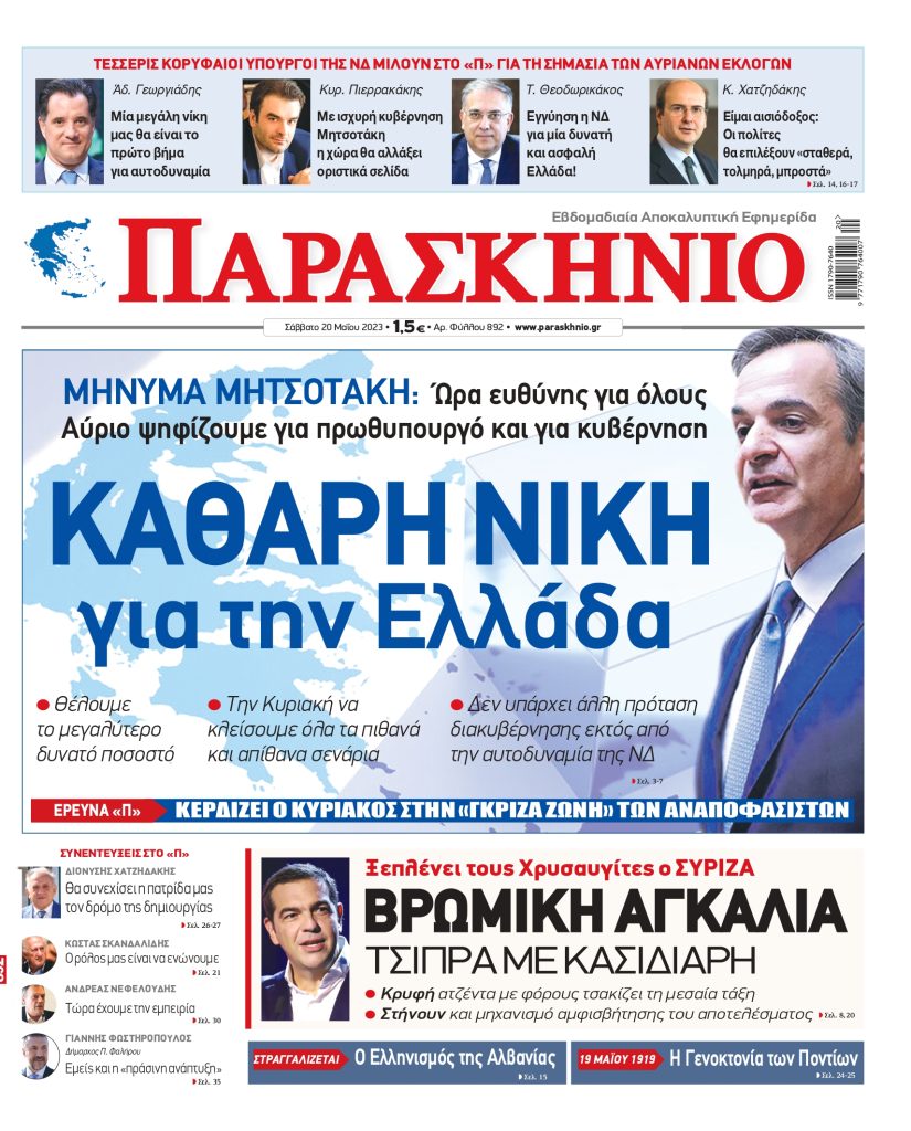 Μη χάσετε το Σάββατο 20 Μαΐου το «ΠΑΡΑΣΚΗΝΙΟ», που κυκλοφορεί με ρεπορτάζ, έρευνες και παρεμβάσεις οι οποίες θα συζητηθούν.
