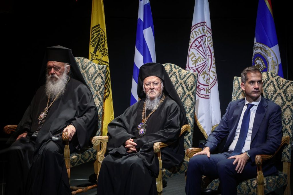 Την ύψιστη τιμητική διάκριση της Πόλεως των Αθηνών «Ευκλεής Αθηναίος» απένειμε σήμερα στην Αυτού Θειοτάτη Παναγιότητα, τον Αρχιεπίσκοπο Κωνσταντινουπόλεως – Νέας Ρώμης και Οικουμενικό Πατριάρχη κ.κ. Βαρθολομαίο, ο Δήμαρχος Αθηναίων Κώστας Μπακογιάννης, παρουσία του Μακαριωτάτου Αρχιεπισκόπου Αθηνών και Πάσης Ελλάδος κ.κ. Ιερώνυμου, σε μία συγκινητική τελετή που πραγματοποιήθηκε το μεσημέρι στο κατάμεστο Ολύμπια Δημοτικό Μουσικό Θέατρο «Μαρία Κάλλας».