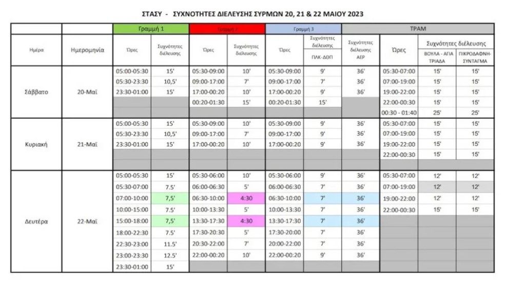 Έκτακτο πρόγραμμα δρομολόγησης σε όλα τα ΜΜΜ, λόγω της διεξαγωγής των εθνικών εκλογών 2023, βρίσκεται σε ισχύ μέχρι και τη Δευτέρα.