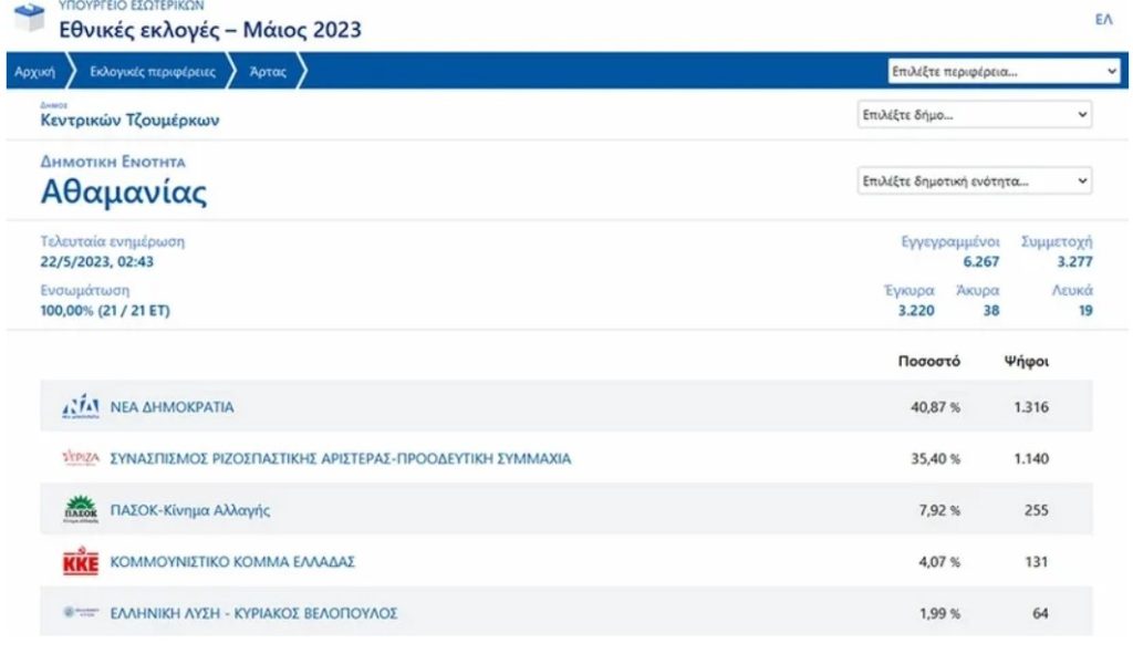 Ο πρόεδρος του ΣΥΡΙΖΑ – Προοδευτική Συμμαχία, Αλέξης Τσίπρας, έχασε στις εθνικές εκλογές μέχρι και στο χωριό του στην Άρτα τη Δημοτική Ενότητα Αθαμανίας.