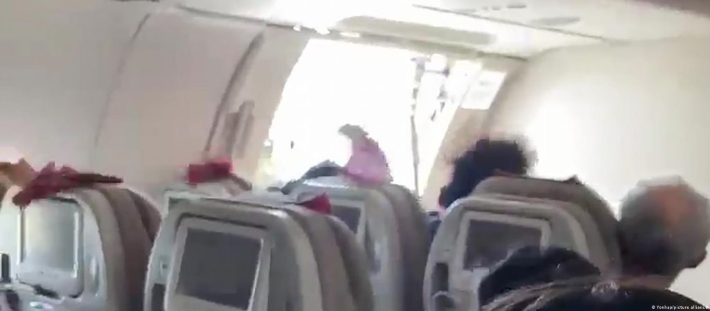 Σε σύντομο βίντεο του επεισοδίου, που μεταδόθηκε από το Yonhap, φαίνεται ο άνεμος να εισβάλλει από την ανοικτή θύρα εν πλήρη πτήσει, ενώ μέσα στην καμπίνα ο αέρας παίρνει το ύφασμα από τα προσκέφαλα των καθισμάτων και τα μαλλιά των επιβατών, ενώ μερικοί επιβάτες βγάζουν κραυγές.