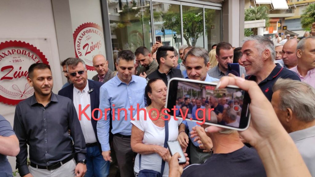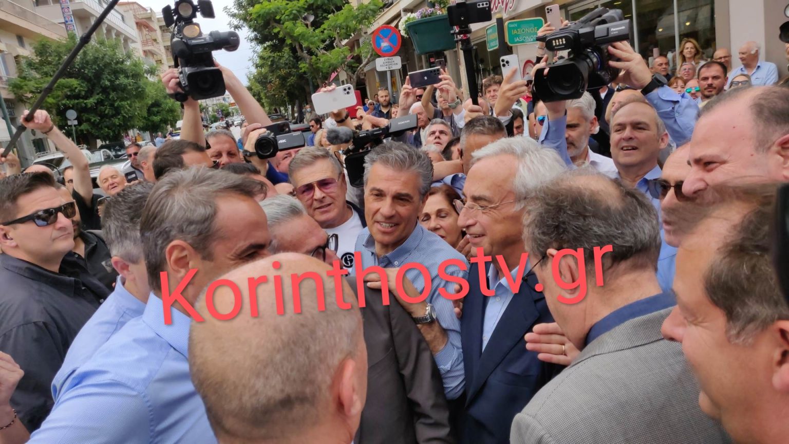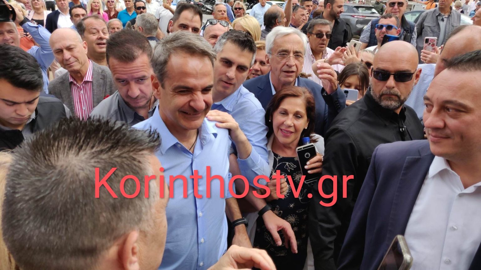 Ο Κυριάκος Μητσοτάκης κατά τη διάρκεια της προγραμματισμένης του περιοδείας εν όψει των εκλογών που είναι προγραμματισμένο να γίνουν την Κυριακή, 25 Ιουνίου, βρέθηκε το πρωί της Παρασκευής στο Λουτράκι.
