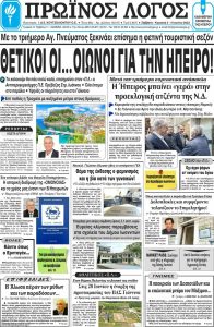 Διαβάστε τα πρωτοσέλιδα των σημερινών τοπικών εφημερίδων