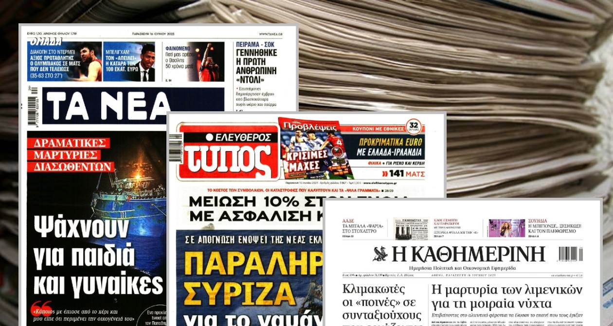 Κοινοποίηση Facebook Twitter LinkedIn Pinterest Email Copy Link Διαβάστε τα πρωτοσέλιδα των σημερινών εφημερίδων Εφημερίδες Πρωτοσέλιδα