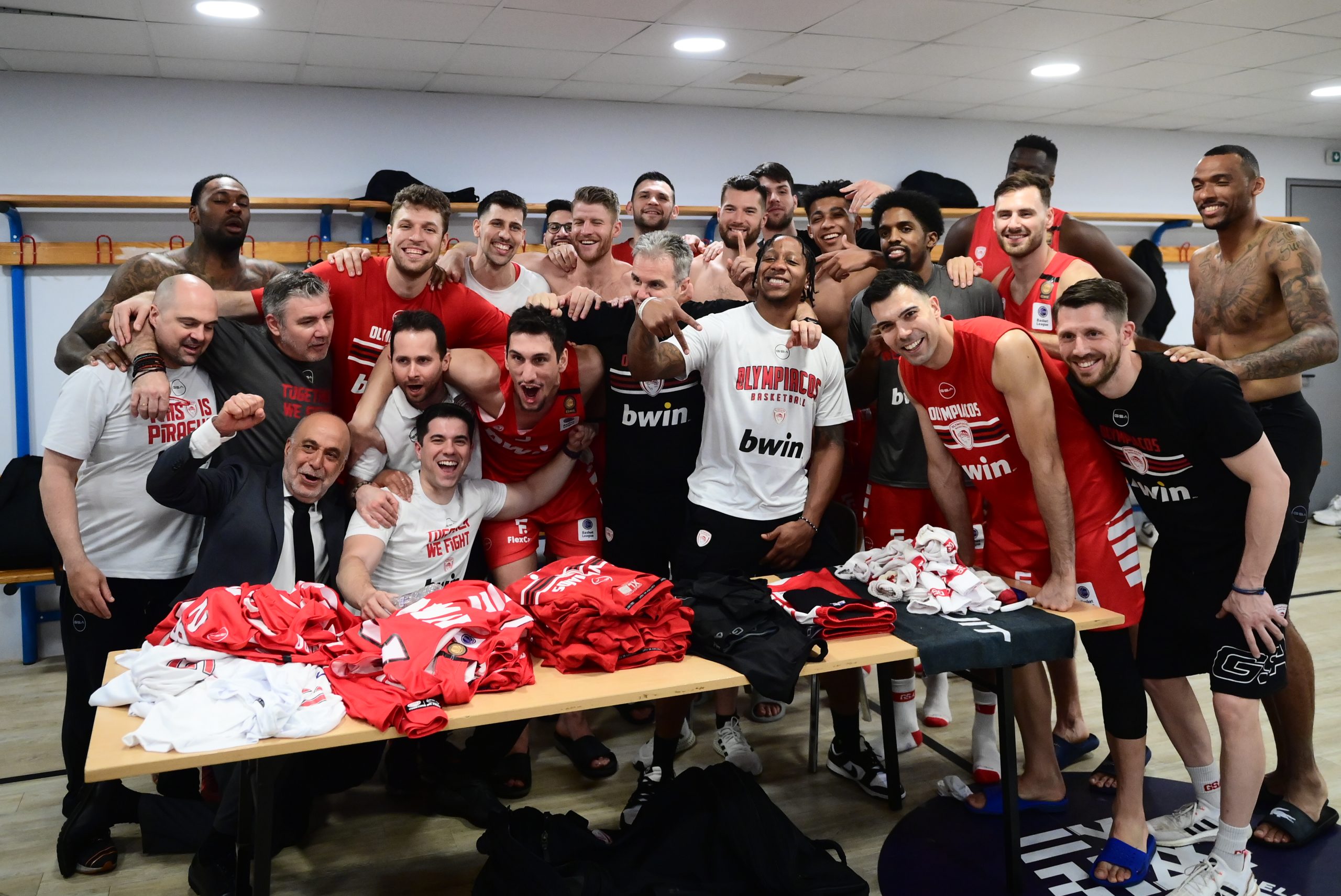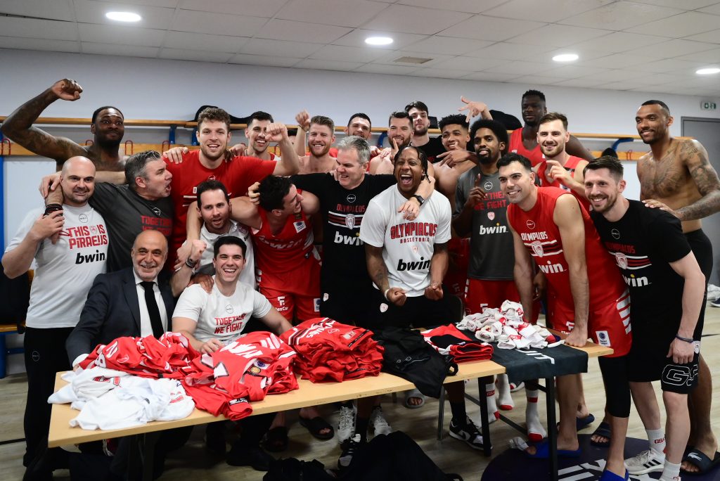 Μπορεί το… πάρτι τίτλου μέσα στο παρκέ να μην ολοκληρώθηκε ποτέ για τους «ερυθρόλευκους», όμως οι παίκτες του Γιώργου Μπαρτζώκα είχαν την ευκαιρία να πανηγυρίσουν στα αποδυτήρια του ΟΑΚΑ.