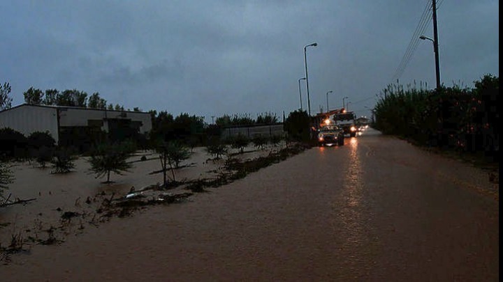 Λόγω της έντονης βροχόπτωσης που σημειώθηκε έχει διακοπεί σήμερα η κυκλοφορία των οχημάτων στην επαρχιακή οδό Αγίου Παύλου-Νέας Γωνιάς και στην Παραλία Καλυβίων, ενώ από χθες η κυκλοφορία των οχημάτων διεξάγεται από παρακαμπτήριους δρόμους σε τέσσερα σημεία του επαρχιακού και δημοτικού οδικού δικτύου. Συγκεκριμένα: