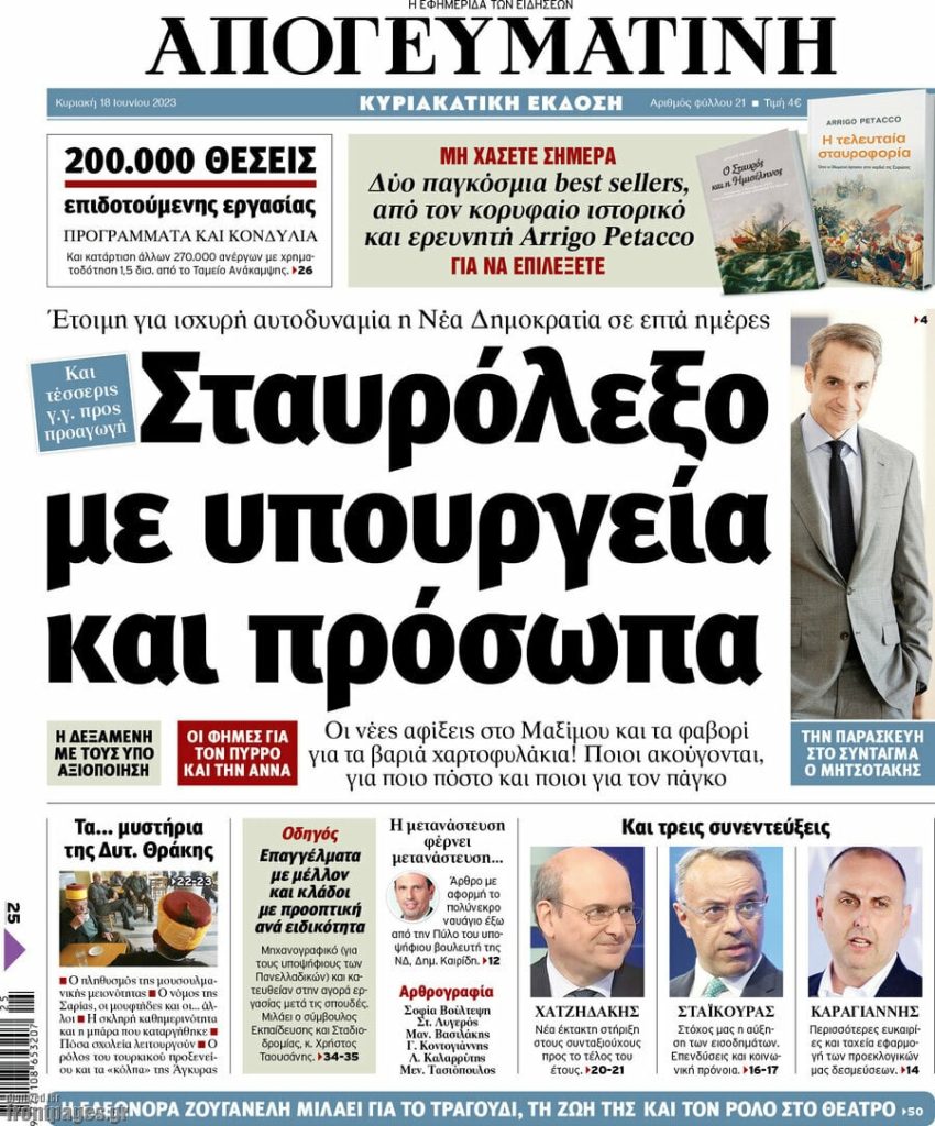 Κοινοποίηση Facebook Twitter LinkedIn Pinterest Email Copy Link Διαβάστε τα πρωτοσέλιδα των σημερινών εφημερίδων Εφημερίδες πρωρτοσέλιδα