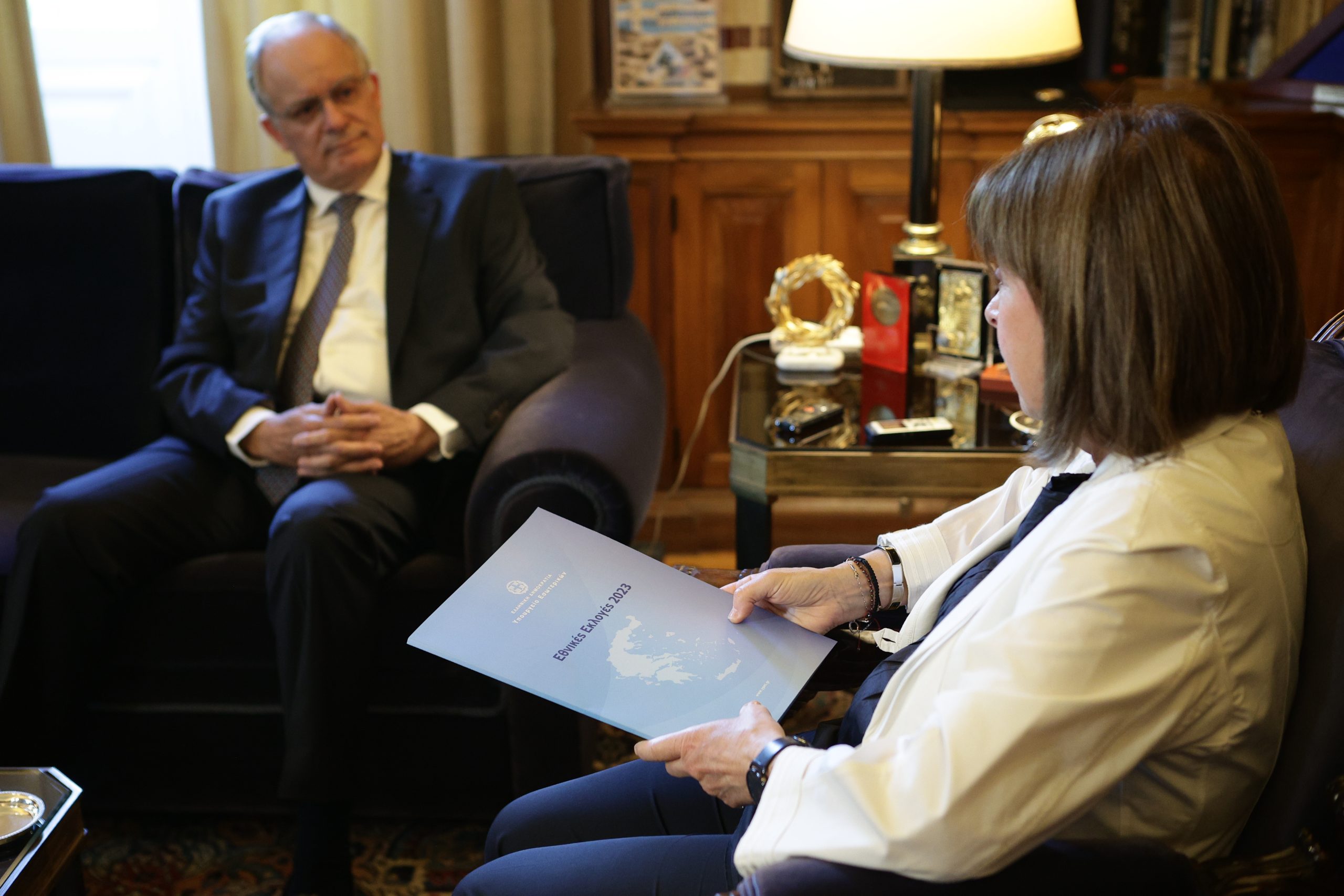Δεκτός από την Πρόεδρο της Δημοκρατίας Κατερίνα Σακελλαροπούλου έγινε ο πρόεδρος της Βουλής Κώστας Τασούλας, ο οποίος και της παρέδωσε το φάκελο με τα αποτελέσματα των εκλογών της 25ης Ιουνίου.