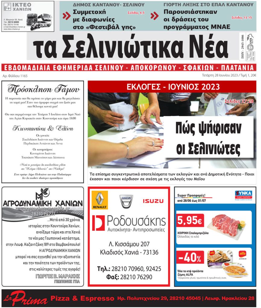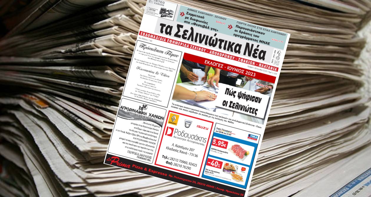 Κυκλοφόρησε το νέο φύλλο της εβδομαδιαίας τοπικής εφημερίδας της Κρήτης “Σελινιώτικα Νέα”.