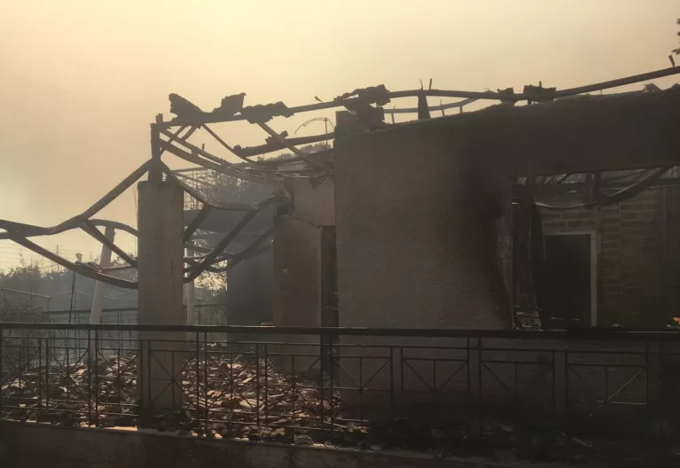 Οι ισχυροί άνεμοι εντάσεως 6-7 μποφόρ, με τις ριπές να φτάνουν στα 8, έχουν επεκτείνει το μέτωπο, με σπίτια στις περιοχές αυτές (Κουβαρά και Λαγονήσι), οι οποίες έχουν εκκενωθεί, να έχουν παραδοθεί στις φλόγες.