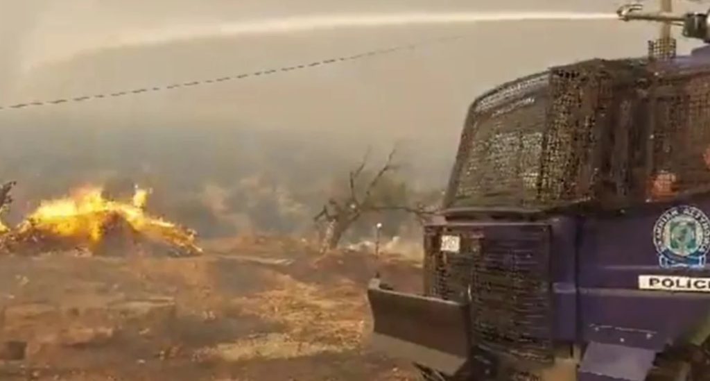 Τα δύο άρματα έσπευσαν στο πύρηνι μέτωπο στη Μάνδρα, προκειμένου να συνδράμουν στο έργο της κατάσβεσης.