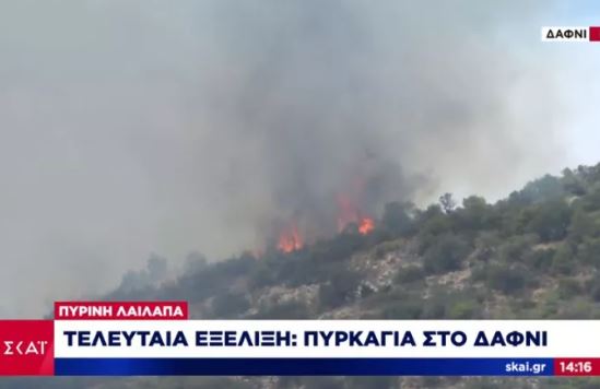 Πυρκαγιά ξέσπασε πριν από λίγο πάνω από τη λεωφόρο Αθηνών στο ύψος της γέφυρας του προαστιακού, στο Δαφνί.