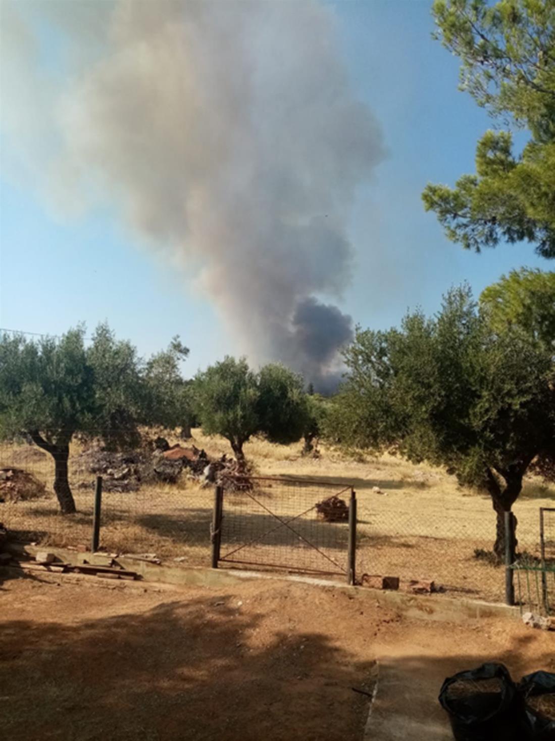 Στην περιοχή επιχειρούν οι επίγειες εκεί και δύο ελικόπτερα της πυροσβεστικής.