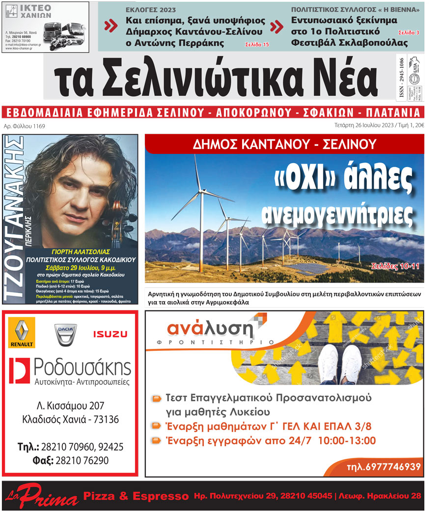Κοινοποίηση Facebook Twitter LinkedIn Pinterest Email Copy Link Δείτε το πρωτοσέλιδο της τοπικής εφημερίδας «Σελινιώτικα Νέα» Σελινιώτικα Νέα