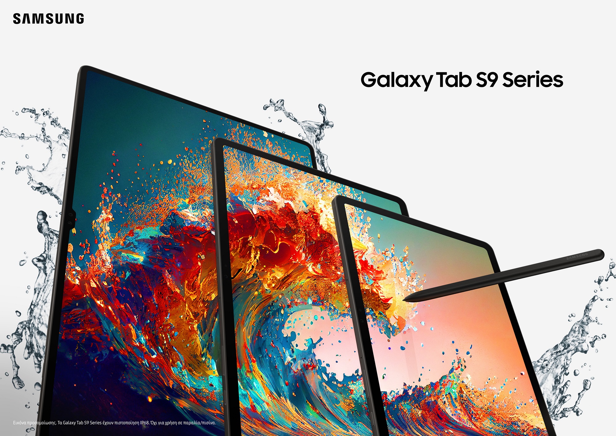 Ντεμπούτο στην ελληνική αγορά και για τα νέα premium Tablets SAMSUNG Galaxy Tab S9|S9+|S9 Ultra που είναι πιο γρήγορα, πιο δυνατά και με πιο ισχυρές λειτουργίες. Διαθέτουν την πιο προηγμένη και ζωντανή οθόνη Galaxy 11’’|12,4’’|14,6’’ αντίστοιχα, ισχυρό επεξεργαστή Snapdragon 8 Gen 2, περισσότερο αποθηκευτικό χώρο, μεγαλύτερη διάρκεια μπαταρίας και εκπληκτικό ήχο από τέσσερα ηχεία από την AKG. Είναι επίσης το 1o Galaxy S Tablet και S Pen με πιστοποίηση ανθεκτικότητας στο νερό IP68. Διαθέσιμα σε εκδόσεις WiFi & 5G (πιστοποιημένα στο δίκτυο COSMOTE 5G) και σε 2 αποχρώσεις, κρεμ και γραφίτη ανάλογα με την έκδοση.