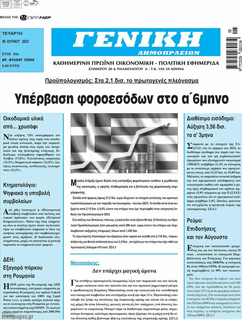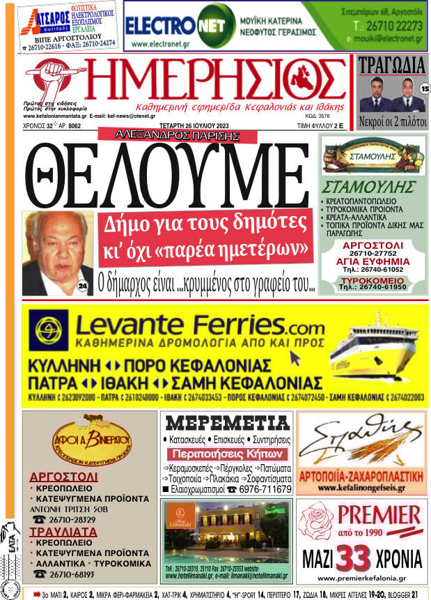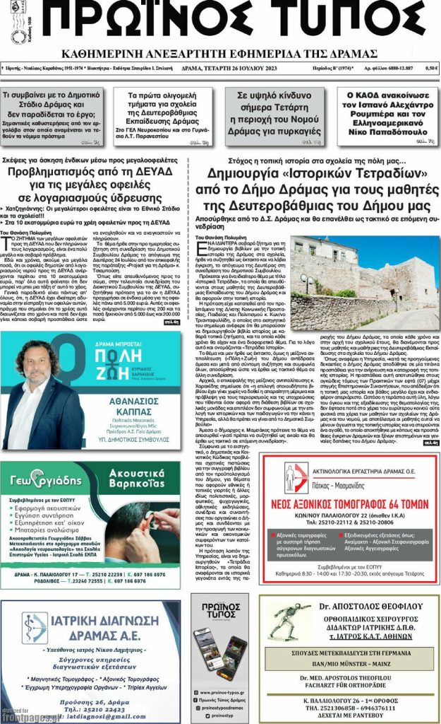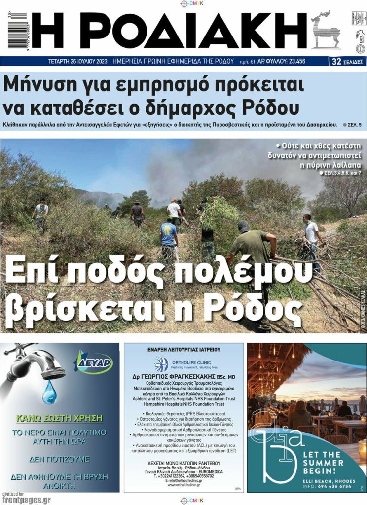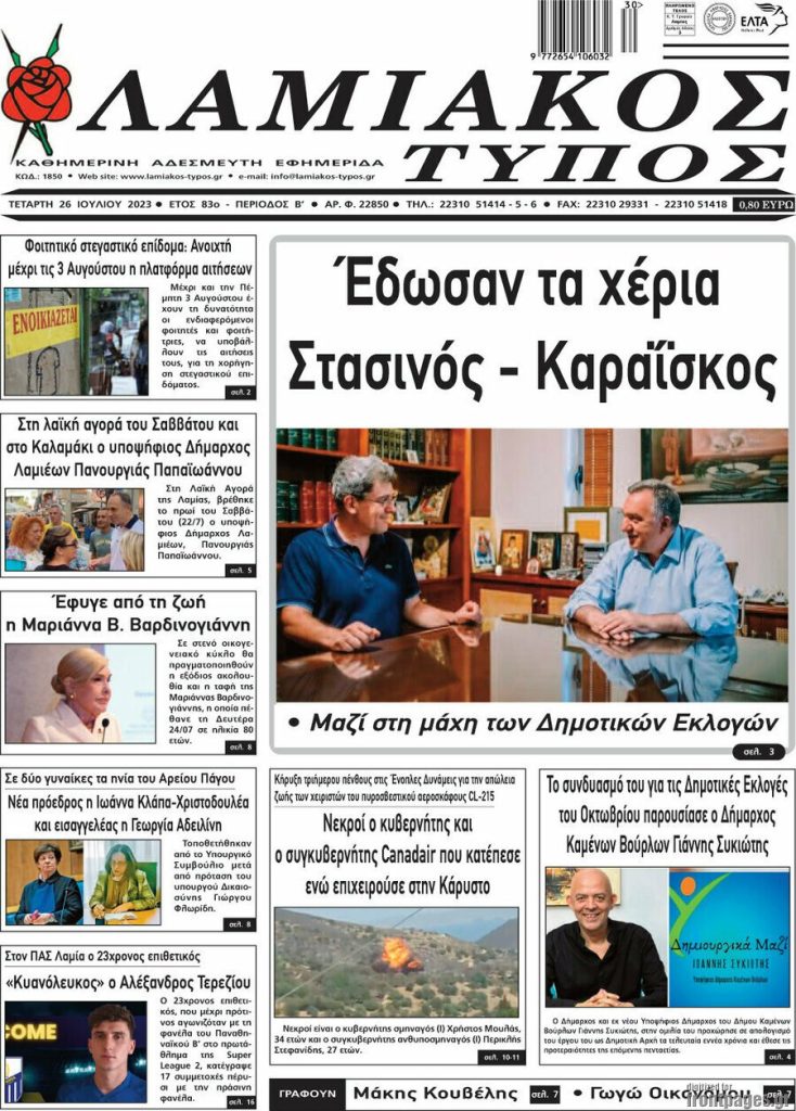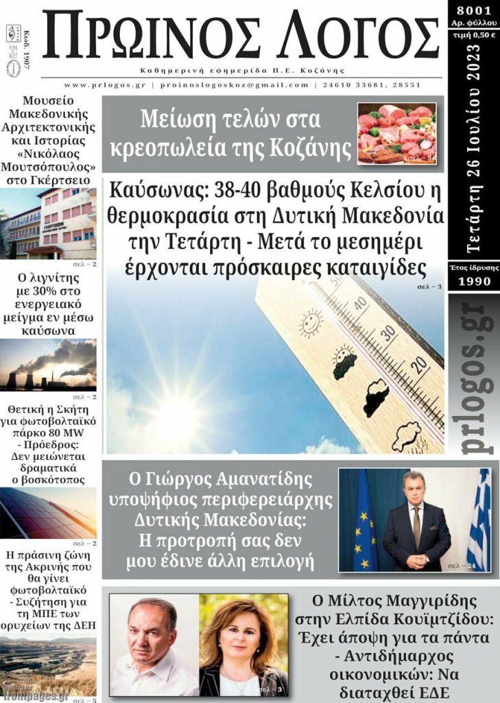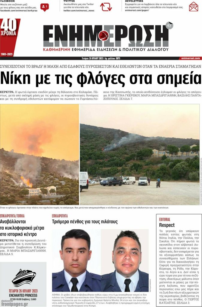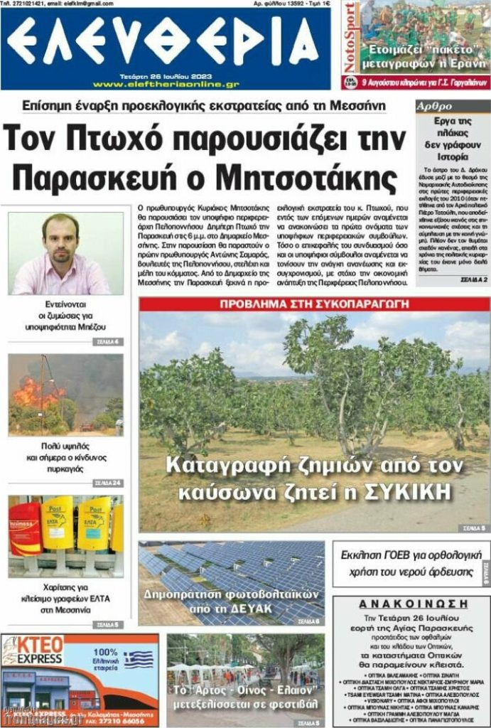 Διαβάστε τα πρωτοσέλιδα των σημερινών τοπικών εφημερίδων