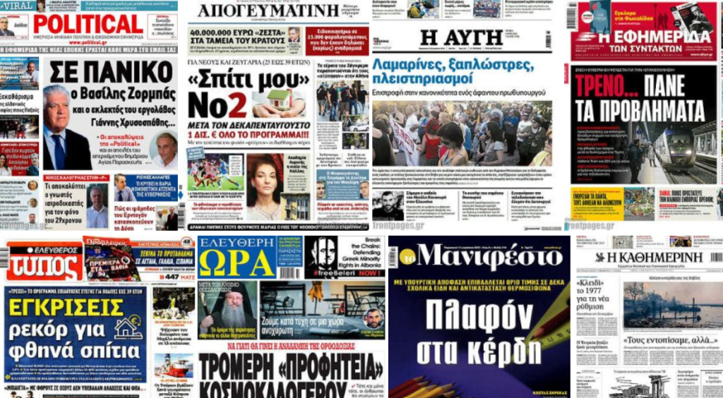 Κοινοποίηση Facebook Twitter LinkedIn Pinterest Email Copy Link Δείτε τα πρωτοσέλιδα των σημερινών εφημερίδων Πρωτοσέλιδα