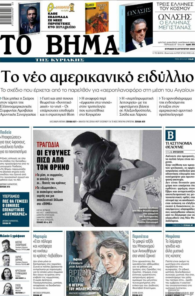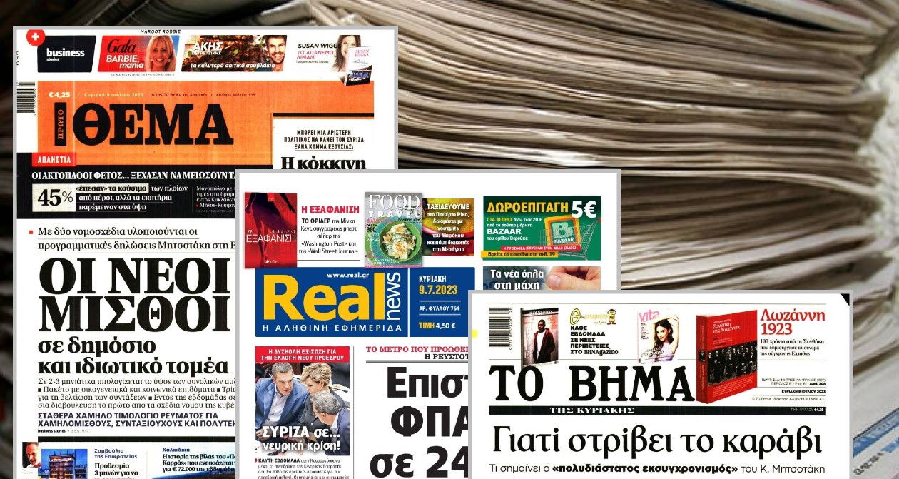 Κοινοποίηση Facebook Twitter LinkedIn Pinterest Email Copy Link Διαβάστε τα πρωτοσέλιδα των σημερινών εφημερίδων Εφημερίδες κυριακάτικες Νέα Πρωτοσέλιδα