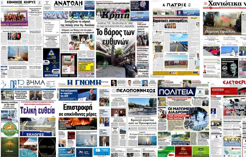 Κοινοποίηση Facebook Twitter LinkedIn Pinterest Email Copy Link Δείτε τα πρωτοσέλιδα των σημερινών τοπικών εφημερίδων πρωτοσέλιδα τοπικών εφημερίδων