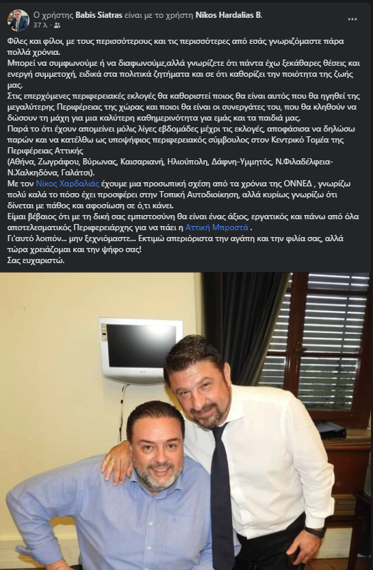 Η ανάρτηση του κ. Μπάμπη Σιάτρα επιβεβαιώνει πλήρως το ρεπορτάζ της διαδικτυακής εφημερίδας Political που κυκλοφορεί από νωρίς το πρωί.