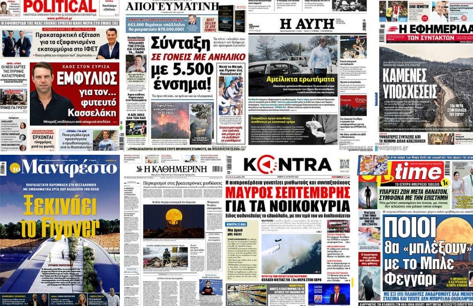 Κοινοποίηση Facebook Twitter LinkedIn Pinterest Email Copy Link Δείτε τα πρωτοσέλιδα των σημερινών εφημερίδων Πρωτοσέλιδα