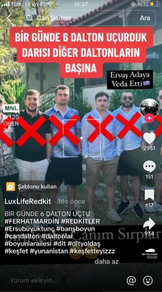 Την ίδια ώρα η εφημερίδα Milliyet δημοσιεύει την Τετάρτη μια φωτογραφία στην οποία υποστηρίζει ότι τα πρόσωπα που απεικονίζονται είναι οι έξι που έπεσαν νεκροί στη δολοφονική ενέδρα. Κατά το δημοσίευμα πρόκειται για τους Doruk Ersu Büyüktunç, Abdurrahman Tekrü, Ömer Kanza, Ozan Kaan Tozlu, Barış Çağan και Burak Tahmaz. Η τουρκική εφημερίδα επικαλείται ανάρτηση σε λογαριασμό στο TikTok (Red Kit çetesi) με την φωτογραφία των έξι και το μήνυμα «πήραμε την εκδίκησή μας»