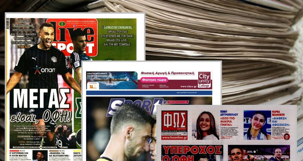Κοινοποίηση Facebook Twitter LinkedIn Pinterest Email Copy Link Διαβάστε τα πρωτοσέλιδα των σημερινών αθλητικών εφημερίδων αθλητικές εφημερίδες Πρωτοσέλιδα