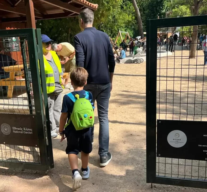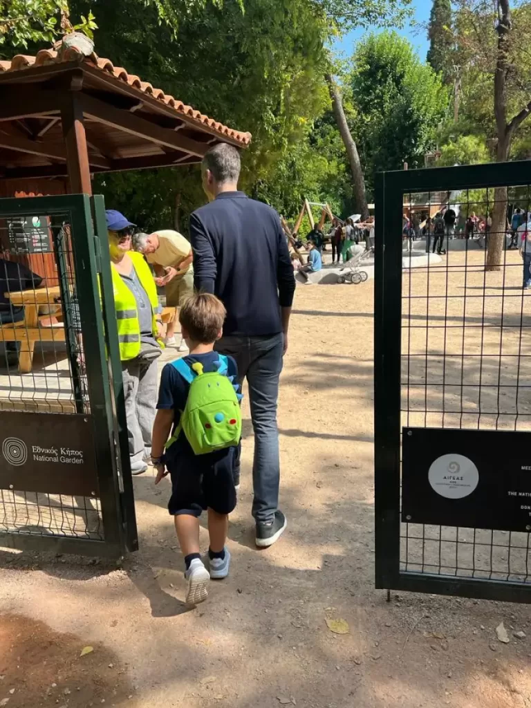 Στο πλαίσιο αυτό, βγήκε με τον μικρό του γιό, βόλτα στον Εθνικό Κήπο και έπαιξε μαζί του στην παιδική χαρά, που πρόσφατα ανακαινίστηκε και αναβαθμίστηκε, ενώ αργότερα συνέχισαν τη βόλτα τους και πέρασαν και από την πλατεία Συντάγματος.