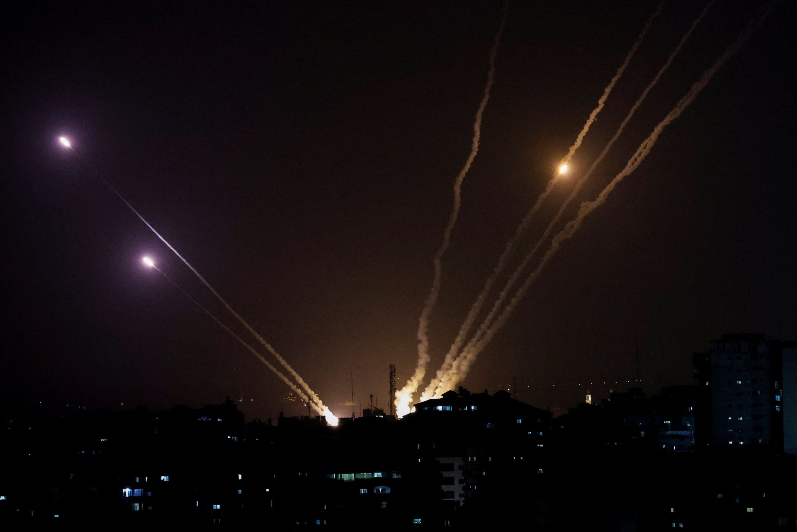 Λίγο μετά τις 9.00 το βράδυ του Σαββάτου, εκδηλώθηκε μεγάλο κύμα επιθέσεων της Χαμάς με ρουκέτες στο Τελ Αβίβ.