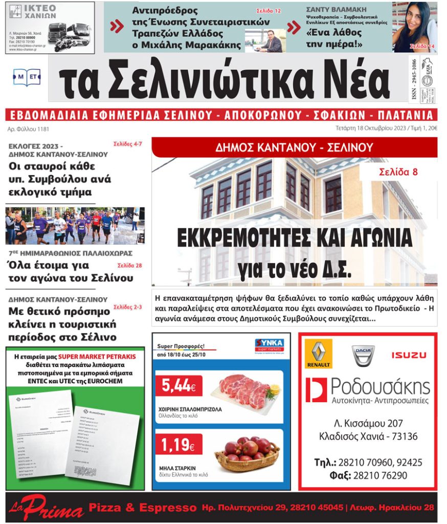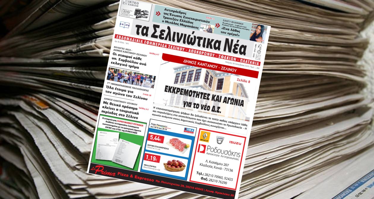 Κυκλοφόρησε το νέο φύλλο της εβδομαδιαίας τοπικής εφημερίδας της Κρήτης “Σελινιώτικα Νέα”.