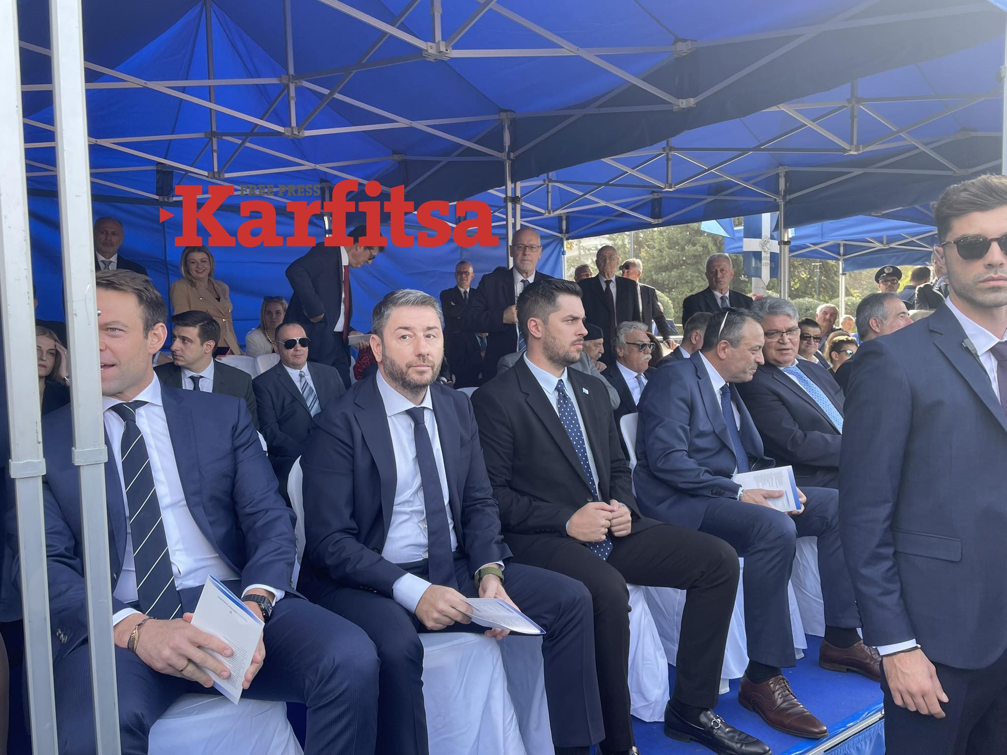 Σε διπλανές θέσεις βρίσκονται οι αρχηγοί των κομμάτων της κεντροαριστεράς για τη στρατιωτική παρέλαση στη Θεσσαλονίκης.