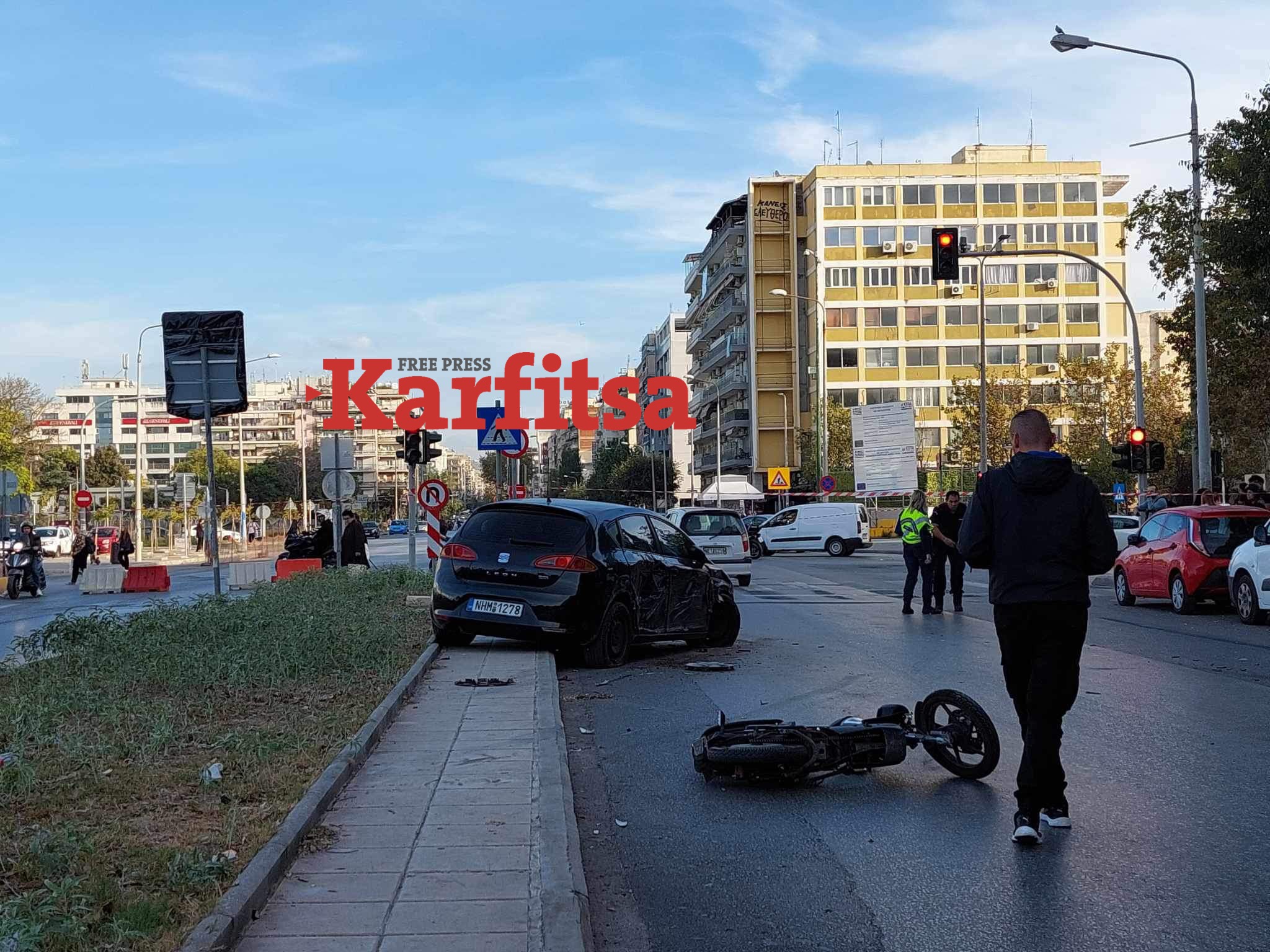 Τροχαίο δυστύχημα σημειώθηκε το μεσημέρι της Τετάρτης στην οδό Μοναστηρίου, έξω ακριβώς από τον Νέο Σιδηροδρομικό Σταθμό Θεσσαλονίκης.