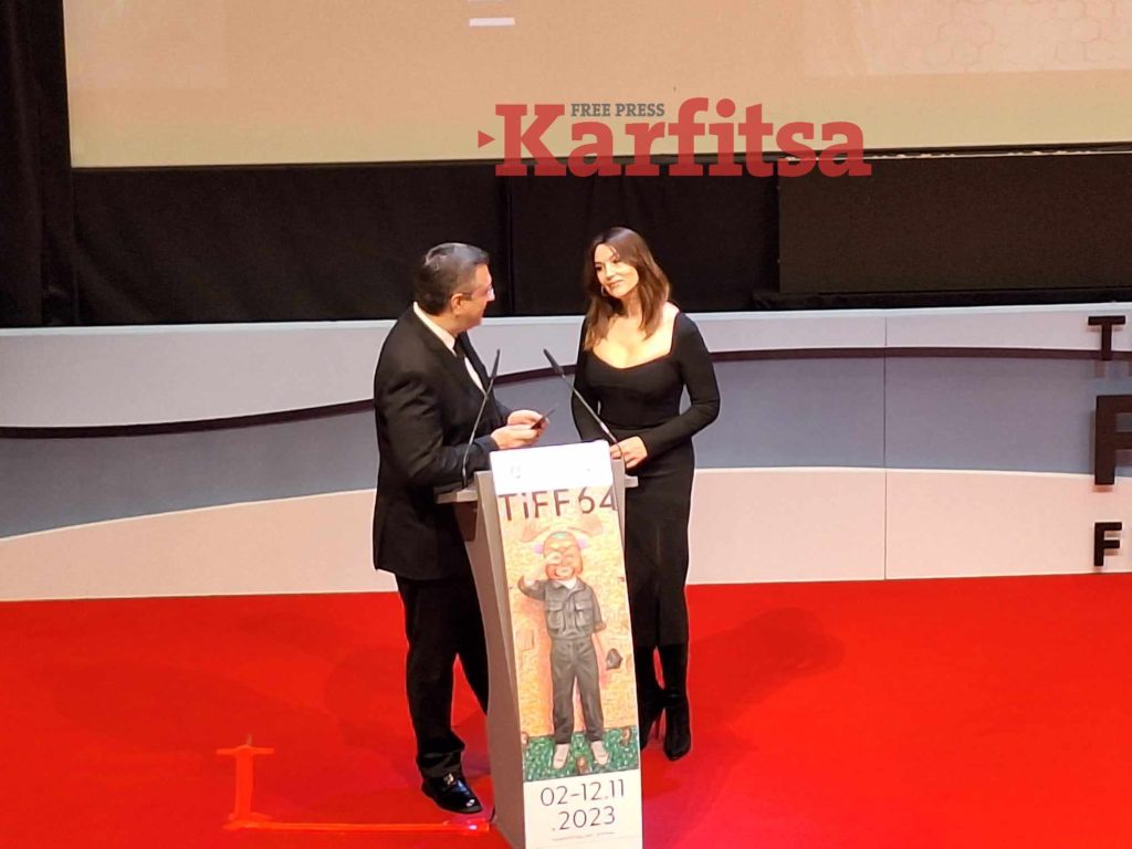 Με τη μητρική γλώσσα της Ιταλίδας σταρ του Χόλιγουντ, Μόνικας Μπελούτσι, υποδέχτηκε την ηθοποιό ο περιφερειάρχης Κεντρικής Μακεδονίας, Απόστολος Τζιτζικώστας το βράδυ της Πέμπτης κατά τη βράβευσή της στο Ολύμπιον.