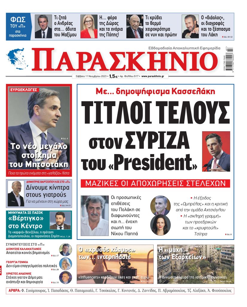 Μη χάσετε το Σάββατο 11 Νοεμβρίου το «ΠΑΡΑΣΚΗΝΙΟ», που κυκλοφορεί με ρεπορτάζ, έρευνες και παρεμβάσεις οι οποίες θα συζητηθούν.