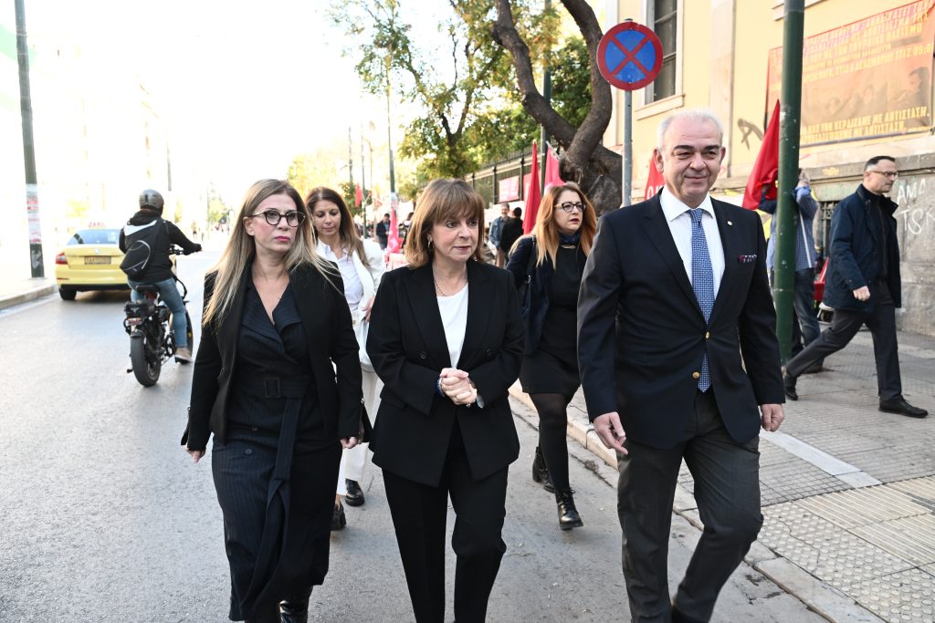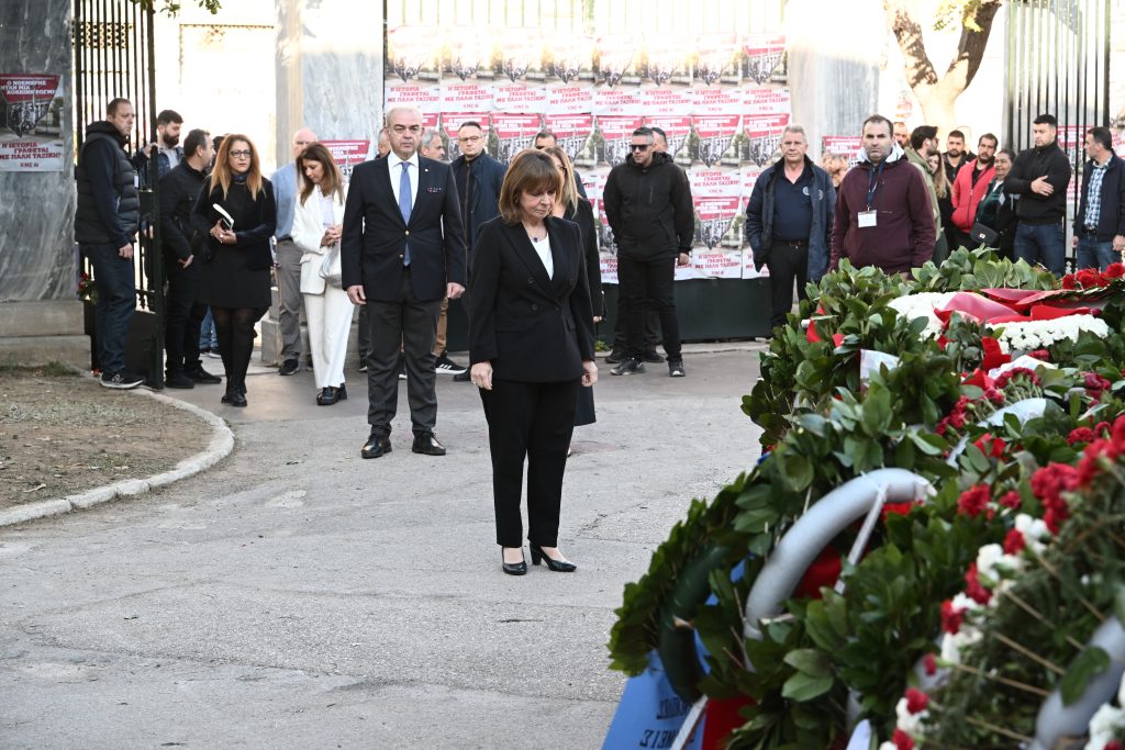 Στεφάνι στο Πολυτεχνείο κατέθεσε το πρωί της Παρασκευής (17/11) η Πρόεδρος της Δημοκρατίας, Κατερίνα Σακελλαροπούλου με αφορμή τον εορτασμό της 50ής επετείου.