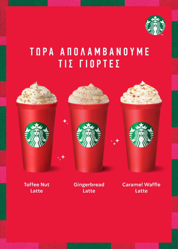 Η αντίστροφη μέτρηση για τα Χριστούγεννα έχει ξεκινήσει και τα καταστήματα Starbucks αποτελούν το απόλυτο σημείο συνάντησης που με έναν ξεχωριστό τρόπο μας φέρνει όλους πιο κοντά στο μαγικό και γεμάτο θαλπωρή πνεύμα των εορτών. Είτε πρόκειται για την πρώτη νοσταλγική γουλιά ενός ροφήματος από τα λατρεμένα κόκκινα ποτήρια που σηματοδοτούν την έναρξη της πιο «ζεστής» εποχής, είτε για εκείνη την συνάντησή για καφέ με ένα αγαπημένο μας πρόσωπο στον δικό μας χώρο ή σ’ ένα κατάστημα Starbucks, η σύνδεση μέσω της μοναδικής εμπειρίας Starbucks βρίσκεται πάντα στο επίκεντρο, και αποτελεί τον συνδετικό μαγικό κρίκο που μας κάνει να ερχόμαστε πιο κοντά. Η πρό(σ)κληση στα γιορτινά ντυμένα καταστήματα Starbucks είναι ανοικτή και οι baristas των Starbucks μας περιμένουν με τους αγαπημένους μας και να δημιουργήσουμε αξέχαστες στιγμές μαζί. Φέτος τα Χριστούγεννα, Βρισκόμαστε Μαζί στα Starbucks και βιώνουμε στιγμές χαράς, ζεστασιάς, αγάπης και ξεγνοιασιάς Μαζί!