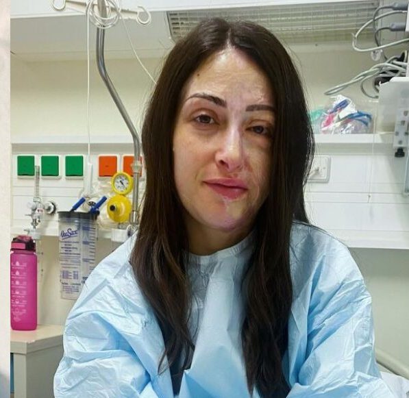Αυτή τη φορά δεν κινδυνεύει η ζωή της, όπως λέει κι η ίδια. Η νοσηλεία της έχει να κάνει με τη βελτίωση των σημαδιών που άφησε στο σώμα και το πρόσωπό της το καυστικό υγρό.