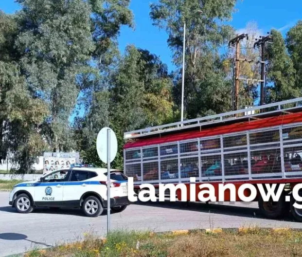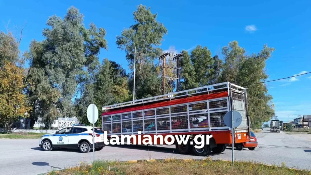 Ατύχημα σημειώθηκε στη Λαμία όταν φορτηγό, που μετέφερε συρόμενο με συγκρουόμενα λούνα παρκ, αποκολλήθηκε, με αποτέλεσμα να ακινητοποιηθεί στη μέση του δρόμου.