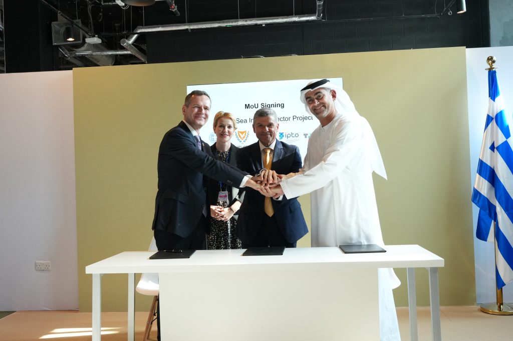 Μνημόνιο Κατανόησης (MoU) μεταξύ του Ανεξάρτητου Διαχειριστή Μεταφοράς Ενέργειας της Ελλάδας (ΑΔΜΗΕ), του Υπουργείου Ενέργειας, Εμπορίου και Βιομηχανίας της Κύπρου και της TAQA, καθετοποιημένου ενεργειακού ομίλου με έδρα το Άμπου Ντάμπι υπεγράφη χθες, Δευτέρα 4 Δεκεμβρίου, στο ελληνικό περίπτερο στην COP 28 στο Ντουμπάι.