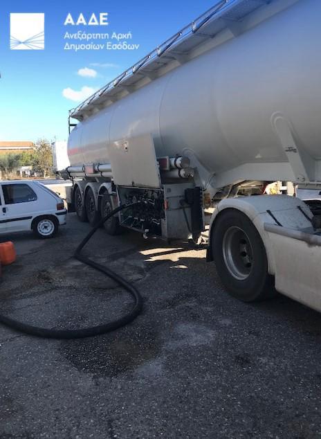 Οι ελεγκτές βρήκαν, στην πίσω πλευρά της εγκατάστασης, βυτιοφόρο, την ώρα, που εκφόρτωνε πετρέλαιο ναυτιλίας σε πλαστική δεξαμενή, για την οποία το πρατήριο δεν διέθετε άδεια, ούτε είχε συνδεθεί με το σύστημα εισροών – εκροών.