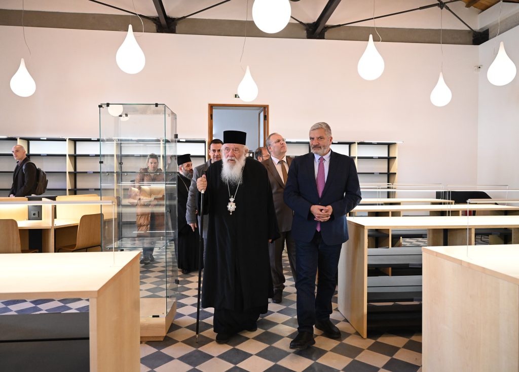 Στα νέα κτίρια τα οποία θα χρησιμοποιηθούν για τη φιλοξενία της βιβλιοθήκης της Εκκλησίας, του ψηφιοποιημένου αρχειακού της υλικού, αλλά και ως χώρος πολιτιστικών εκδηλώσεων, ξεναγήθηκαν ο Περιφερειάρχης Αττικής και ο Αρχιεπίσκοπος Αθηνών και Πάσης Ελλάδος κ. Ιερώνυμος. Στην επίσκεψη παραβρέθηκαν επίσης ο Αντιπεριφερειάρχης Κεντρικού Τομέα Γ. Βλάχος και ο Διευθυντής Τεχνικών Έργων της Περιφέρειας Α. Καλογερόπουλος.