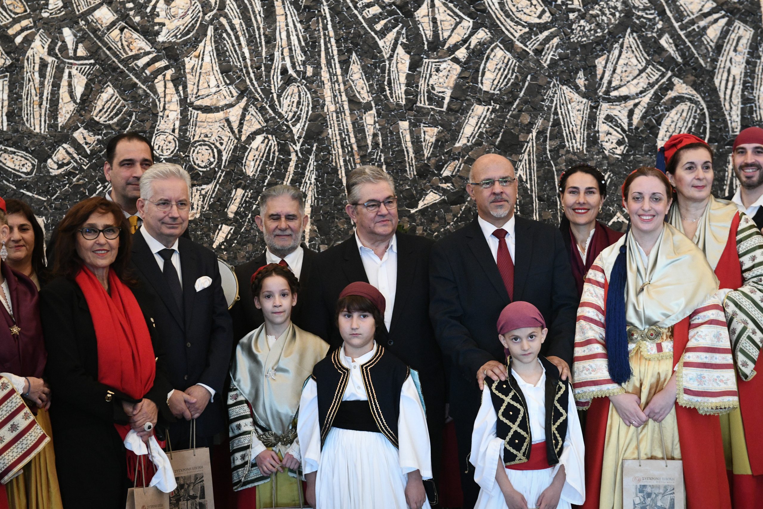 Τα Χριστουγεννιάτικα κάλαντα στην τσακώνικη διάλεκτο έψαλλε στον ΓΓ της ΚΕ του ΚΚΕ Δημήτρη Κουτσούμπα, η Παναρκαδική Ομοσπονδία Ελλάδας.