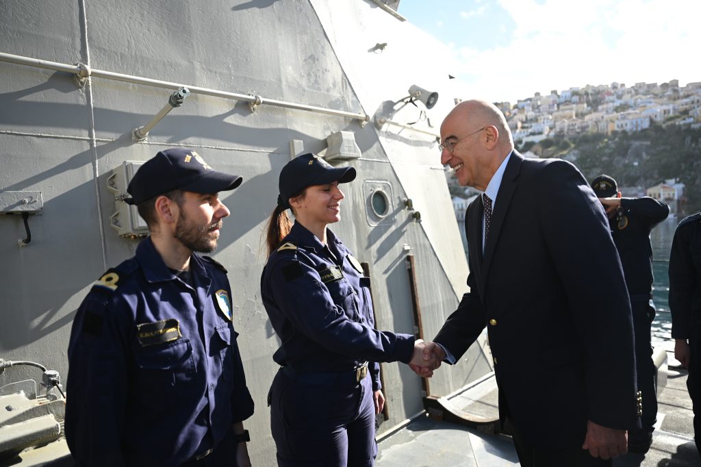 Ο κ. Δένδιας αντάλλαξε ευχές για τα Χριστούγεννα με τον κυβερνήτη και το πλήρωμα.